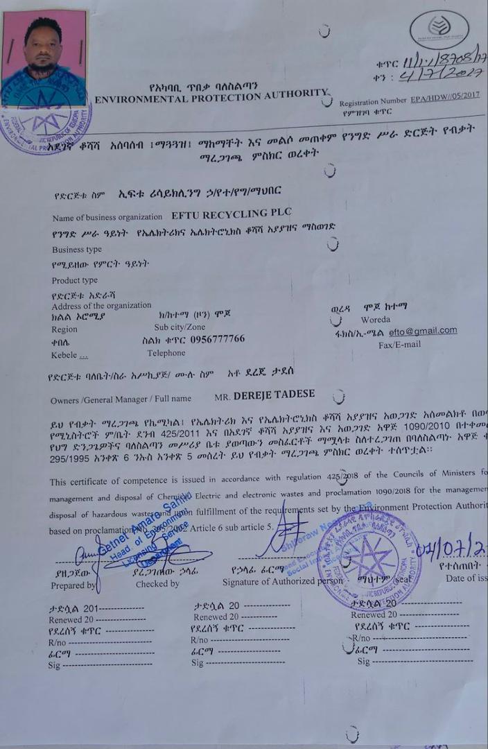 We are one of the very few companies which comply with E-waste Collection, Recycling Center and Dismantling Regulations in Ethiopia.